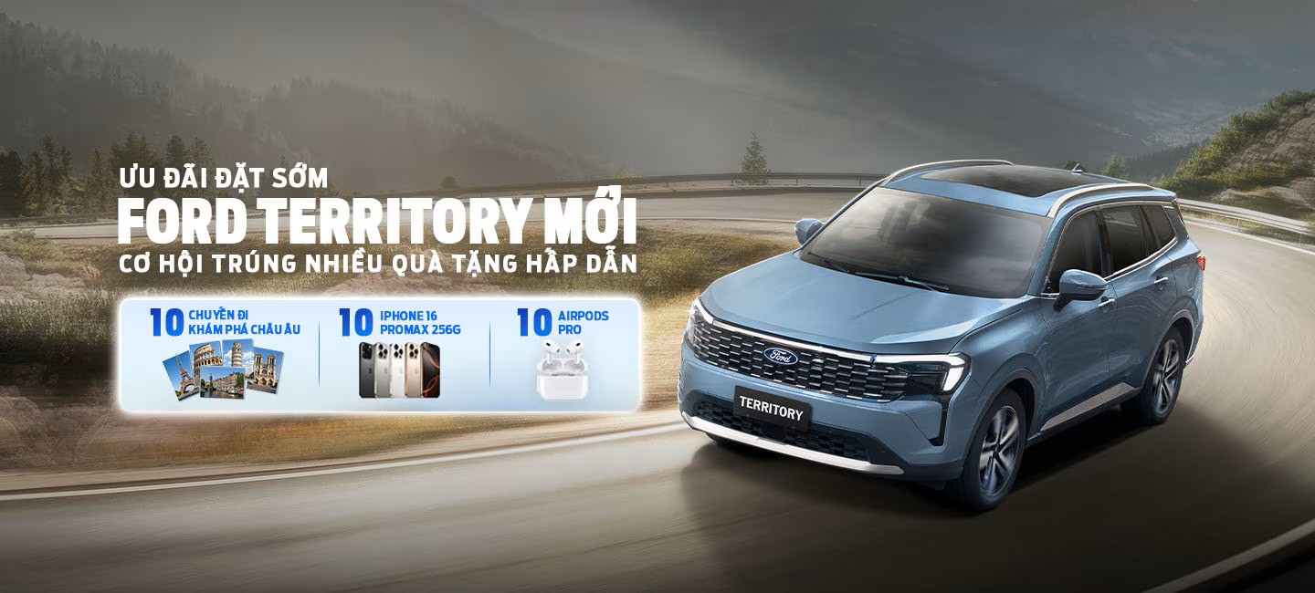 Từ ngày 19/08 đến 30/09/2025, Ford Việt Nam chính thức triển khai chương trình Ưu Đãi Đặt Sớm Ford Territory Mới, mang đến cho khách hàng mẫu SUV hiện đại bậc nhất trong phân khúc, cùng cơ hội nhận về những phần quà giá trị đẳng cấp.